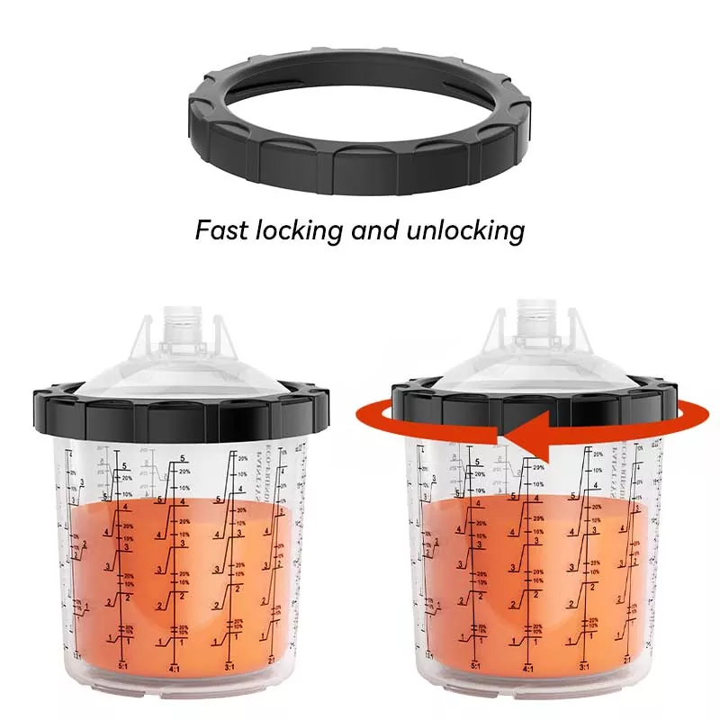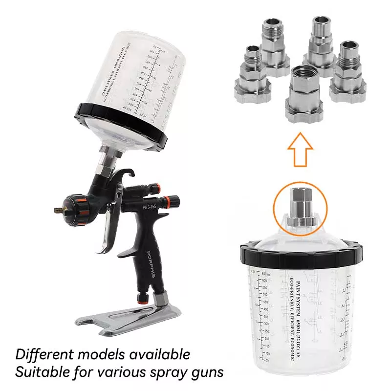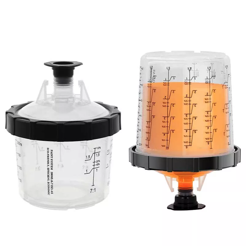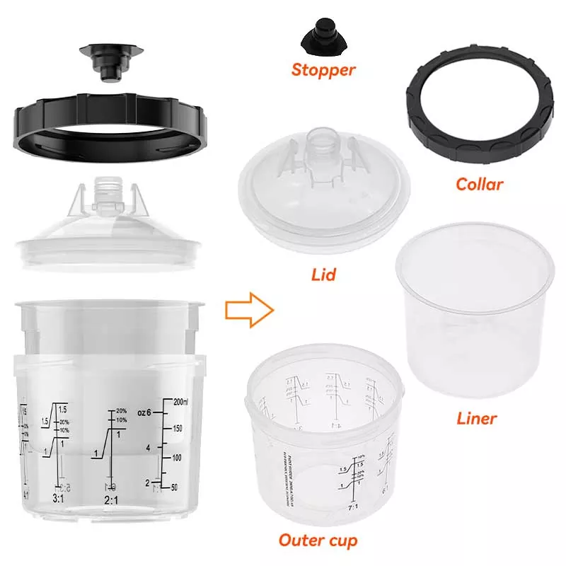 Овај систем чаша за једнократну употребу од 200 мл 1.0 у основи замењује традиционалну чашу за гравитационо пуњење јер не само да штеди више боје, већ и побољшава ефикасност фарбања. Конкретно, изврстан дизајн аутоматског спиралног спуштања кошуљице при фарбању чини боју потпуно искоришћеном; у међувремену, дизајн за брзо закључавање и замену кошуљице избегава прање чаше, омогућавајући да се фарбање обавља ефикасно и више пута. Имамо адаптере за скоро све брендове пиштоља за прскање на тржишту како бисмо задовољили потребе за искуством различитих ентузијаста пиштоља за прскање. Адаптер је направљен од нерђајућег челика, који је отпоран на корозију боје и веома издржљив. Чврста комбинација облоге са поклопцем осигурава да систем чаша не пропушта боју током фарбања и подржава дуготрајно складиштење неискоришћене боје како би се избегао отпад.
