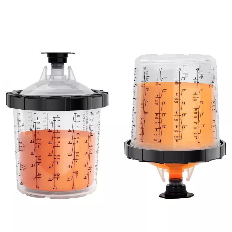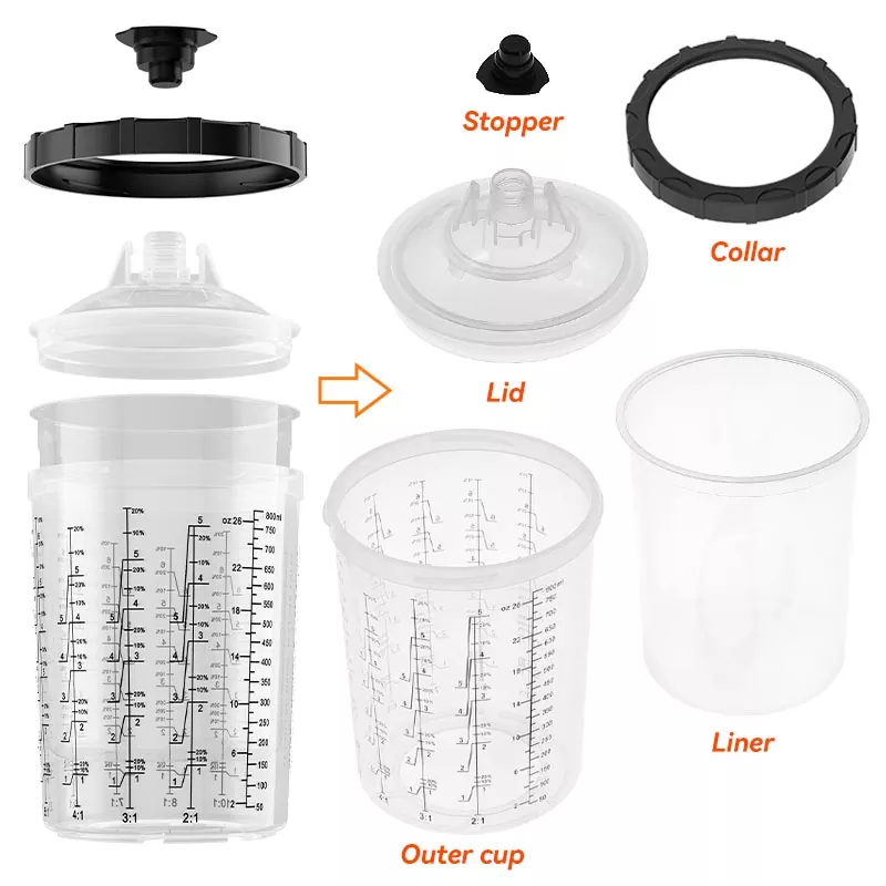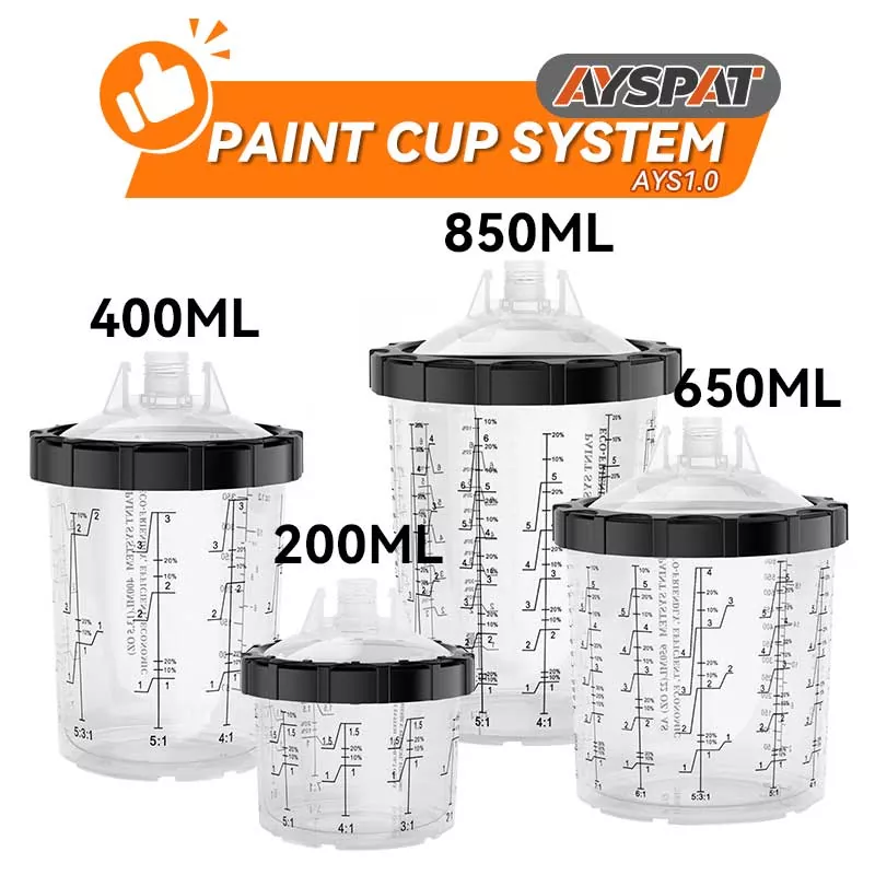 Систем чаша за једнократну употребу 1.0 од 800 мл чини мешање и прскање боје лаким и практичним, а истовремено поједностављује чишћење и складиштење боје. Нема више преношења производа у посебне контејнере - једноставно користитеунутрашње чаше за једнократну употребуза мешање, прскање и складиштење различитих боја одвојено, елиминишући прскање боје. АИСПАТ раствор чаше за једнократну употребу је дизајниран за честе промене боје, смањујући време чишћења и употребу растварача.