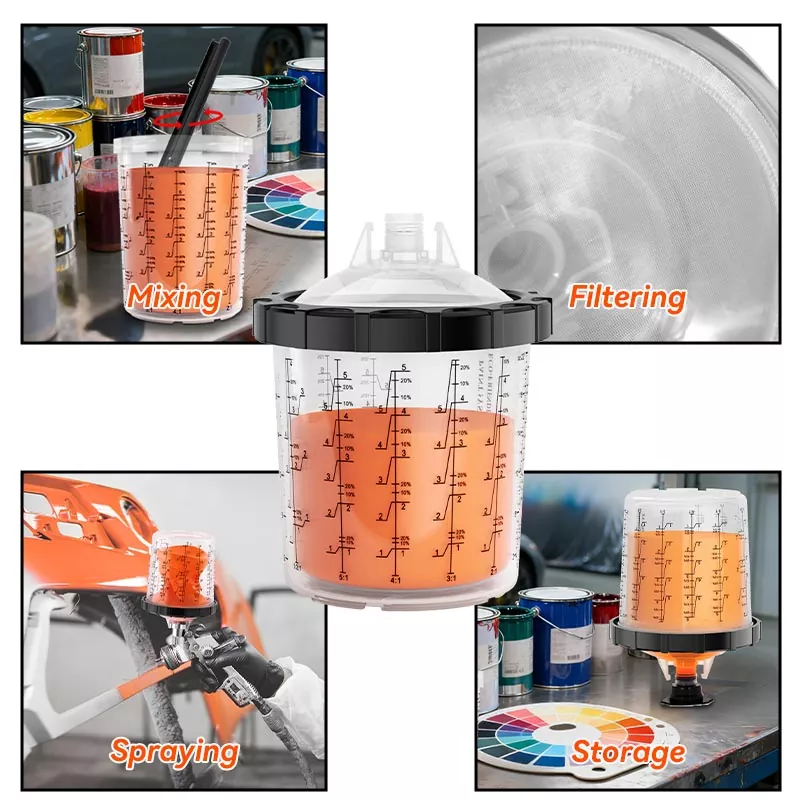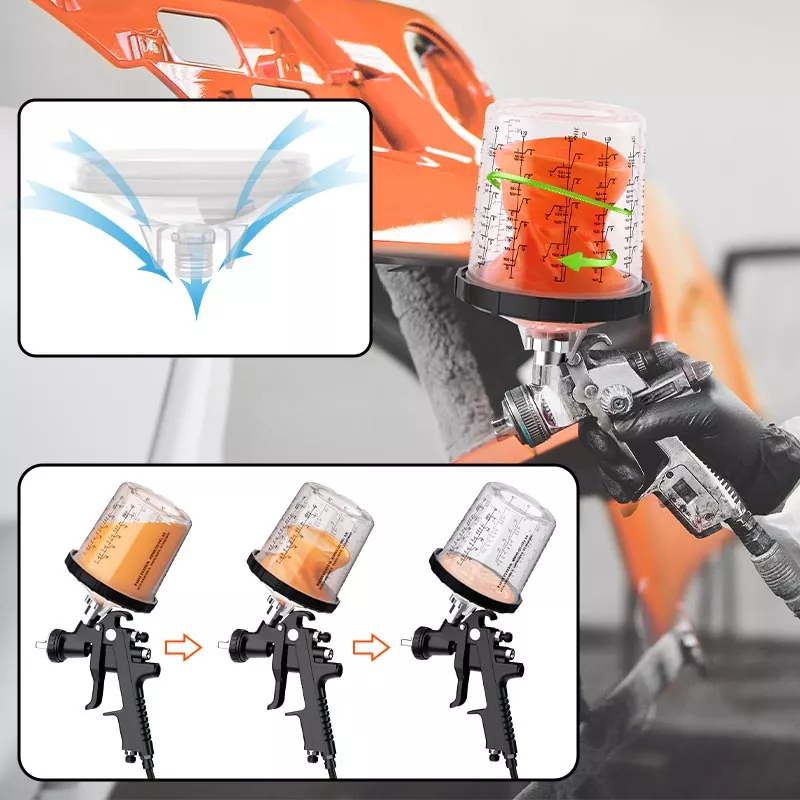 Систем чашица за једнократну употребу 1.0 од 800 мл садржи 850 мл боје, идеалан је за поправке од 4 панела или мање материјала, укључујући велике серије прозирних премаза. Овај асортиман је развијен да побољша радну ефикасност и квалитет прскања како би се испунила очекивања сваког алтернативног система за поновно фарбање. чаше за прскање јер то чини процес прскања чистијим и ефикаснијим. Боја се може мешати директно у посуди за прскање, а потребно је само минимално чишћење након сваке употребе. Ако желите да продате чашу за пиштољ за прскање на велико, контактирајте нас да добијете бесплатне узорке за тестирање.