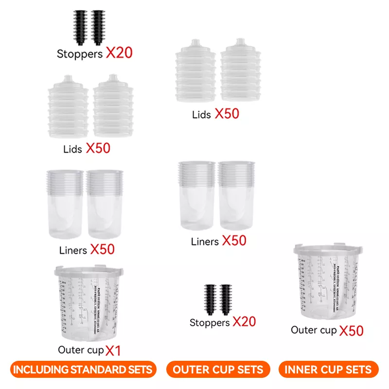 Куп за распршивање за једнократну употребу пружа различите могућности капацитета (укључујући 200 мл, 400 мл, 650мл, 850мл), што може да задовољи различите потребе за прскањем са 1-панел поправке на поправке 4 панела и смањење фреквенције замене купа.