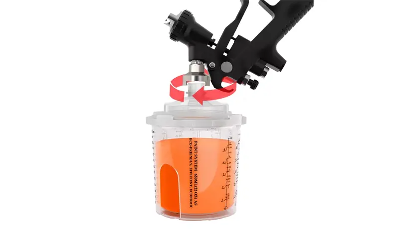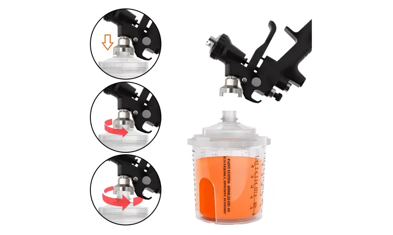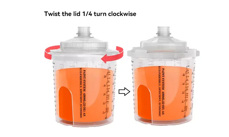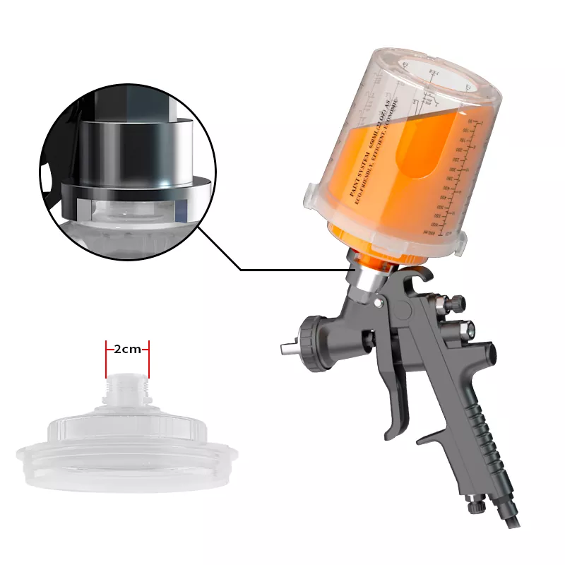Интегрисани дизајн копче за ситку за распршивање за једнократну употребу чврсто повезује адаптер, што увелике побољшава стабилност везе између шоље за прскање и пиштољ за прскање. У исто време, увећани пречник изливања чаше чини да се боји пражњење брже и више униформе, што увелико побољшава ефекат прскања.
