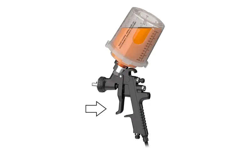Повежите црево за ваздух и притисните окидач да бисте уклонили било који ваздух са шоље за пиштоље за прскање за једнократну употребу